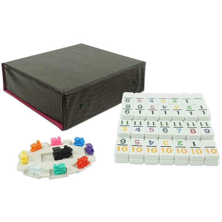 Juego de Dominó Doble 12 Personalizado de Fábrica, 91 Piezas con Fichas Numeradas, 9 Trenes Mexicanos de Plástico de Colores en Caja de PVC para Casino