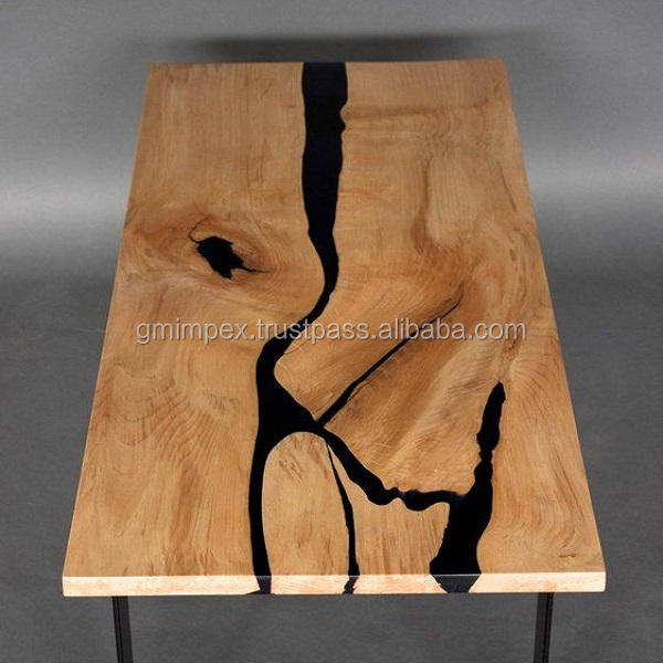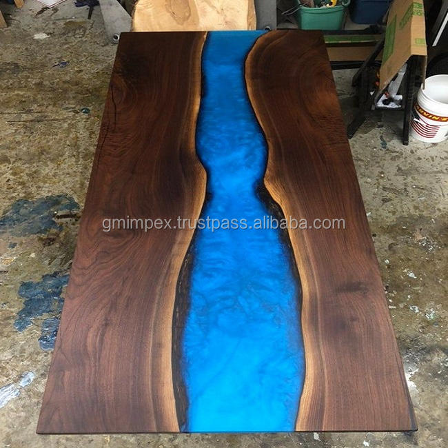 Mesa de resina epoxi personalizada de fábrica, mesa de comedor de Río de resina negra, colores epoxi opcionales y Losas de madera opcionales de GM Impex