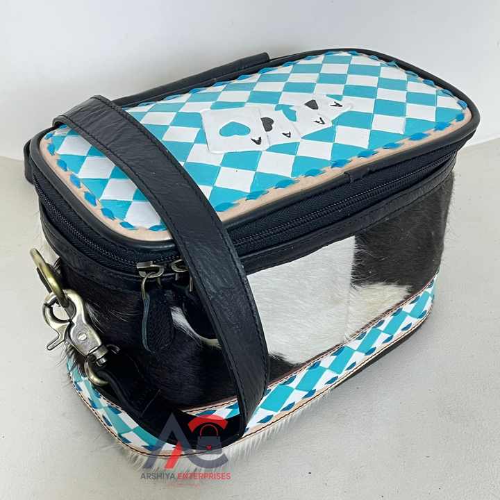 Nombre del Producto:Bolso cosmético cruzado de cuero a cuadros trabajado a mano