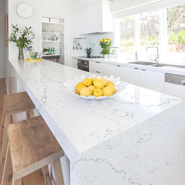 Gran oferta, encimera de losa de cuarzo Calacatta blanca grande moderna, pulida a mano Premium, personalizada de fábrica para cocina, Bar, Hotel