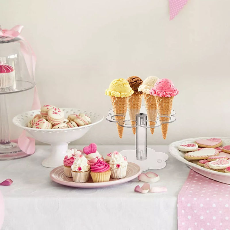 Soporte de cono de helado personalizado de fábrica, soporte de exhibición de cono de gofre acrílico de 8 agujeros