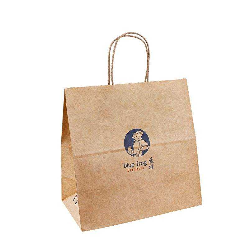 Bolsas de Papel Kraft Personalizadas de Fábrica para Entrega de Comida en Restaurantes, con Asa Plana, Ecológicas, para Llevar Sushi y Otros Alimentos