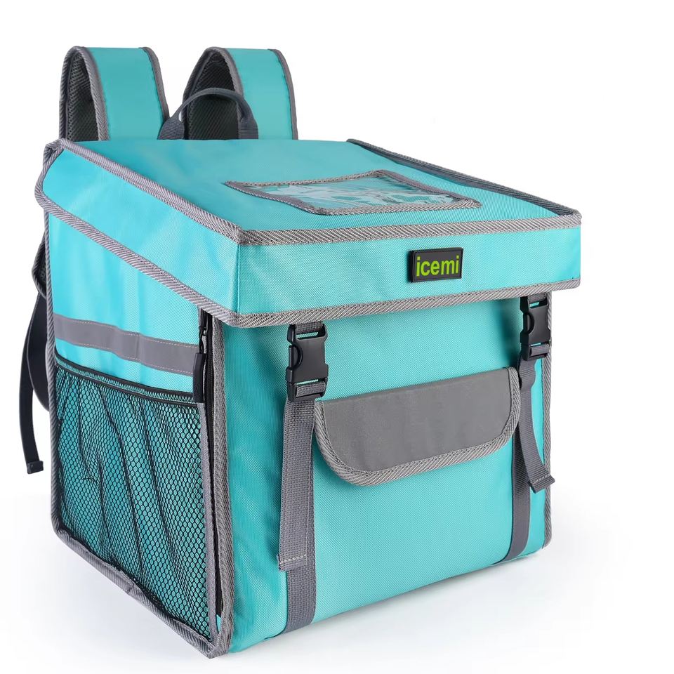 Bolsa refrigeradora de entrega de alimentos térmica aislada grande personalizada de fábrica con logotipo de patrón de letras para bicicleta motocicleta bicicleta
