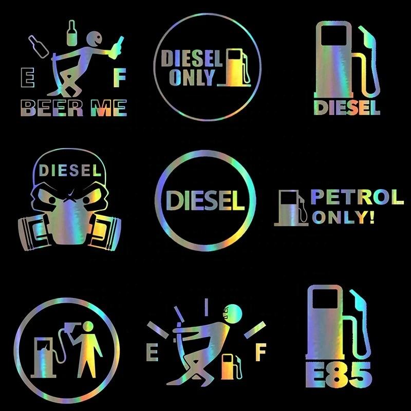 Logotipo personalizado de fábrica, pegatinas para coche, indicador de Gas plateado holográfico, gráficos vacíos, alto consumo de Gas, calor, resistente al agua, No