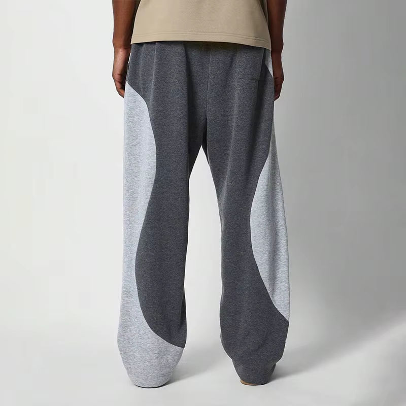Fábrica logotipo personalizado colores bloque Patchwork recto ajuste Unisex Hip Hop algodón Jogger pantalones de pierna ancha pantalones de chándal para hombre
