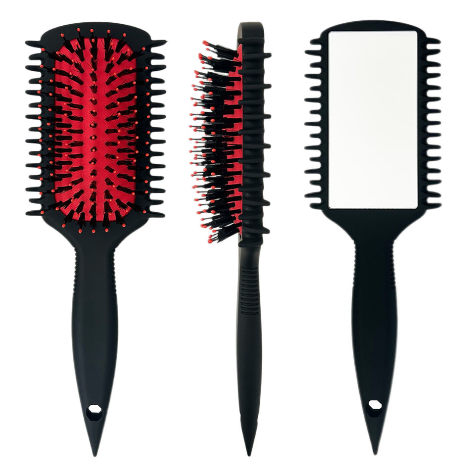 Cepillo para el Cabello con Diseño de Diamantes y Logotipo Personalizado de Fábrica, Cepillo para Definir Rizos con Espejo de Diamantes de Imitación para Desenredar y Peinar