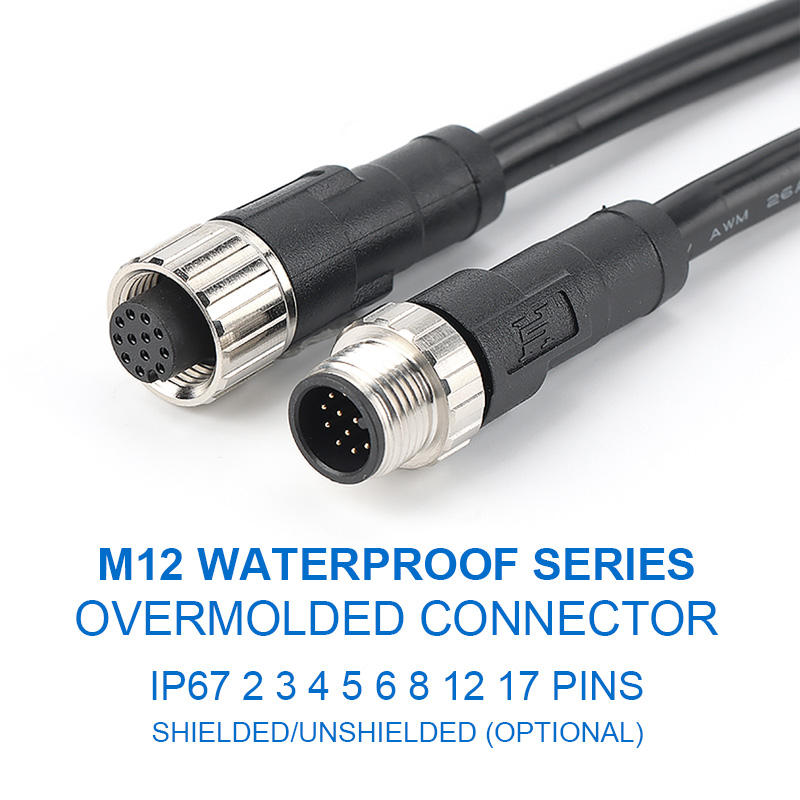 Conector de Aviación M12 Personalizado de Fábrica, 2-12 Pines - 1M 3M 5M 8M 10M, Cable Recto/Curvo Blindado de PUR/PVC, Macho/Hembra, Impermeable