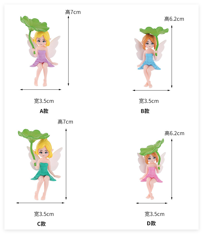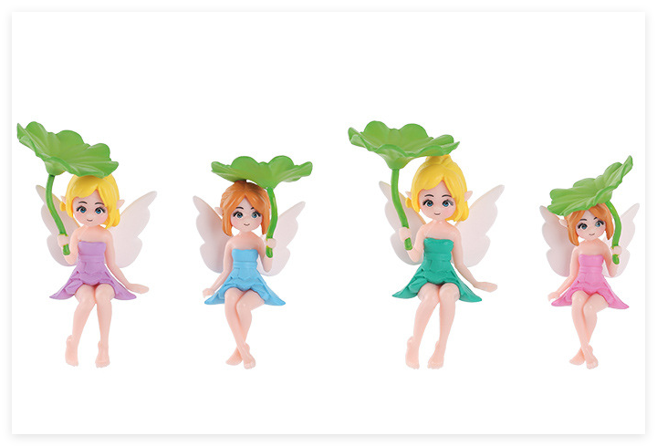 Fábrica por encargo acción dibujos animados chico juguete estilo 3D Hada Ángel hoja de loto niña figuras plástico figurita fabricante pastel Topper Decoración