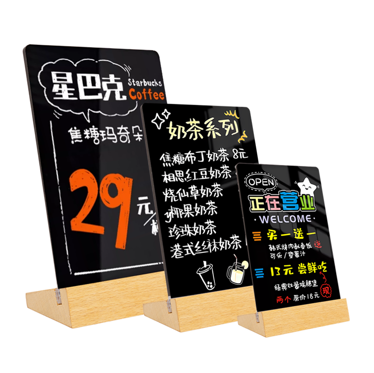 Pizarras de Mesa Pequeñas Personalizadas de Fábrica con Bases de Madera Marrón