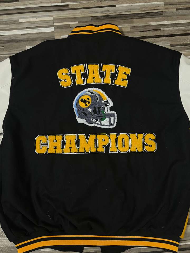 Chaqueta universitaria ajustada personalizada de fábrica para hombre, Chaqueta de algodón y lana con mangas de cuero, lona bordada, abrigo Bomber Leetrman para invierno