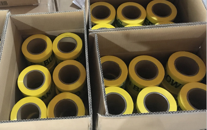 Cinta de Barrera de Advertencia de PE Virgen 100% sin Adhesivo, Impresa a Medida en Fábrica, 75 mm de Ancho, 30 um de Grosor, Colores y Texto Personalizados