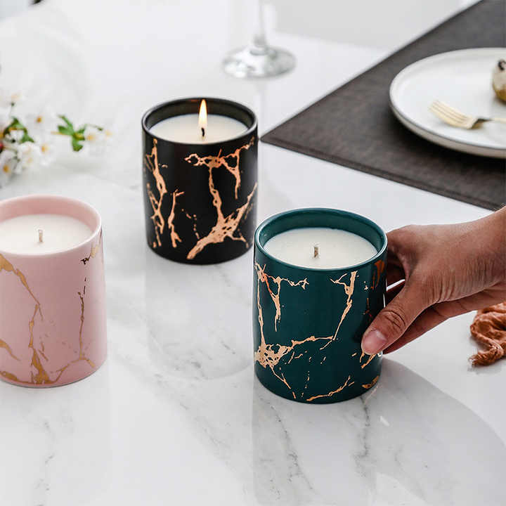 Vela perfumada de cera de soja con etiqueta privada personalizada de fábrica, vela de cerámica de mármol para Decoración de cumpleaños, boda, Hotel, hogar, regalo