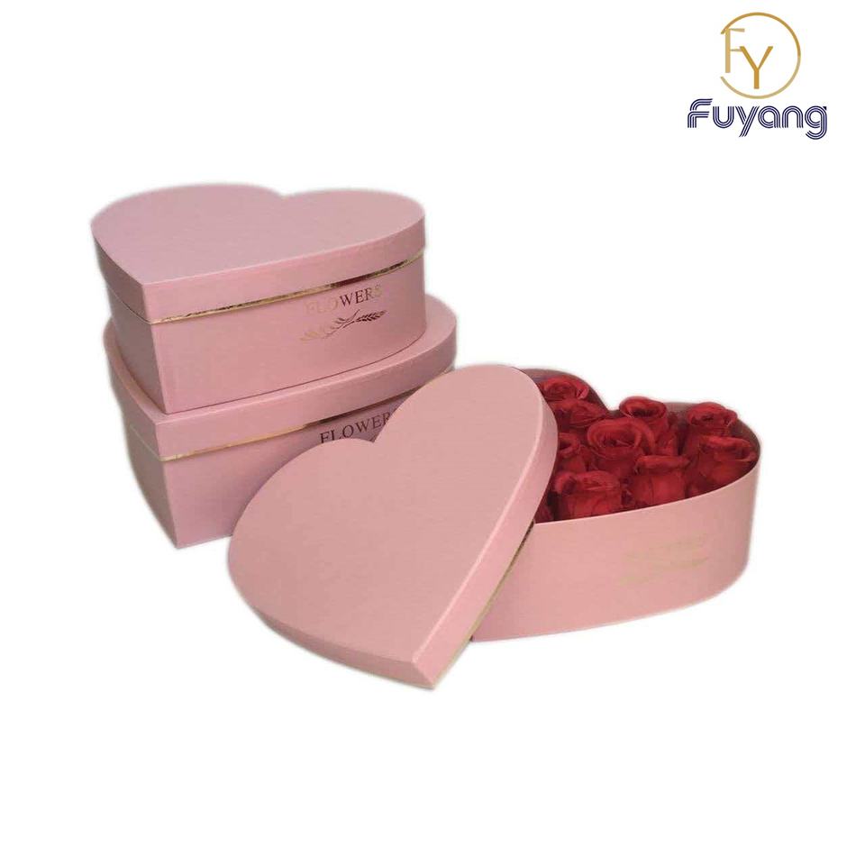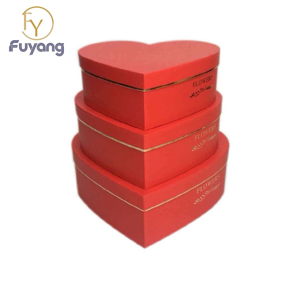 Fábrica personalizada: set de regalo de papel artístico reciclado mate, estuche de tres piezas con forma de corazón, embalaje de cartón barnizado, caja floral elegante