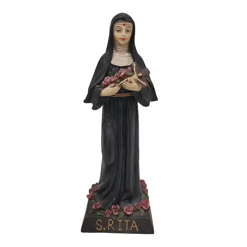 Fábrica de resina personalizada Santa Rita estatua religiosa artesanía regalos cristianos decoración del hogar figurita productos religiosos católicos
