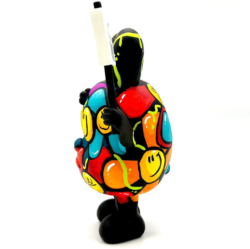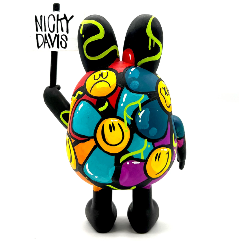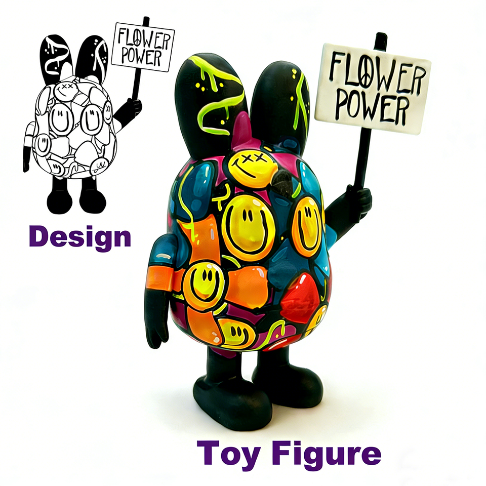 Juguete de Vinilo PVC Personalizado de Fábrica, Diseño Redondo de Conejo con Graffiti, Bloques de Color, Cara Sonriente y Flor, para Decoración del Hogar, Auto, Oficina y Escritorio