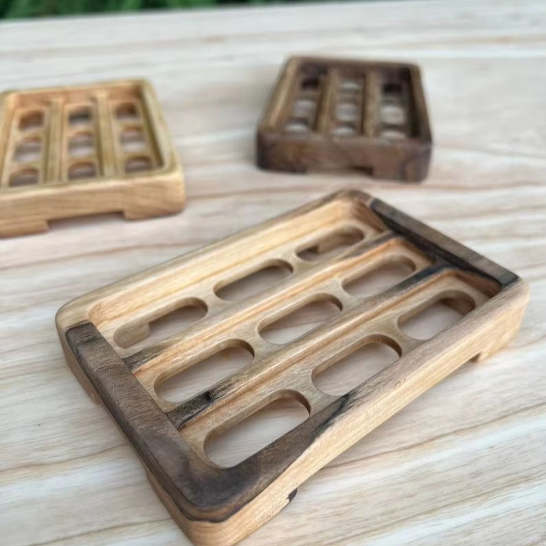 Jabonera autodrenante personalizada de fábrica, soporte de caja, bandeja dispensadora de jabón de madera para Baño