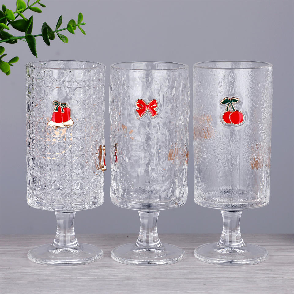 Vaso de Cristal de Sodio y Calcio Personalizado de Fábrica, Diseño 3D de Flores Navideñas, para Jugo o Agua