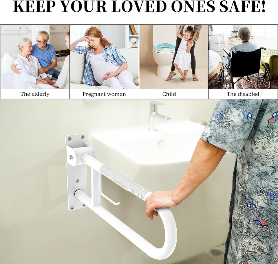 Barandillas de baño de acero inoxidable Abs tipo U personalizadas de fábrica, barandilla plegable para inodoro