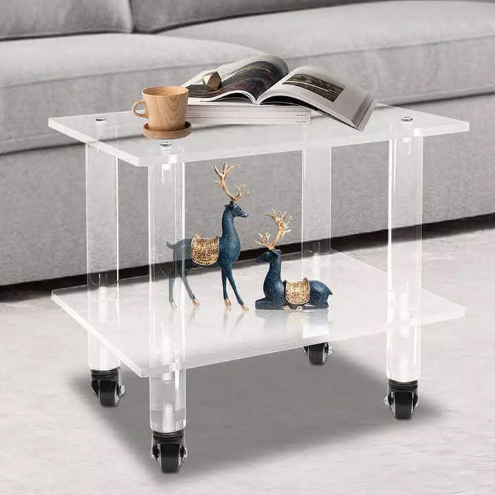 Carro utilitario personalizado de fábrica 11,81 "x 15,75" x 13,18 "Acrílico de 2 niveles 4 ruedas en transparente