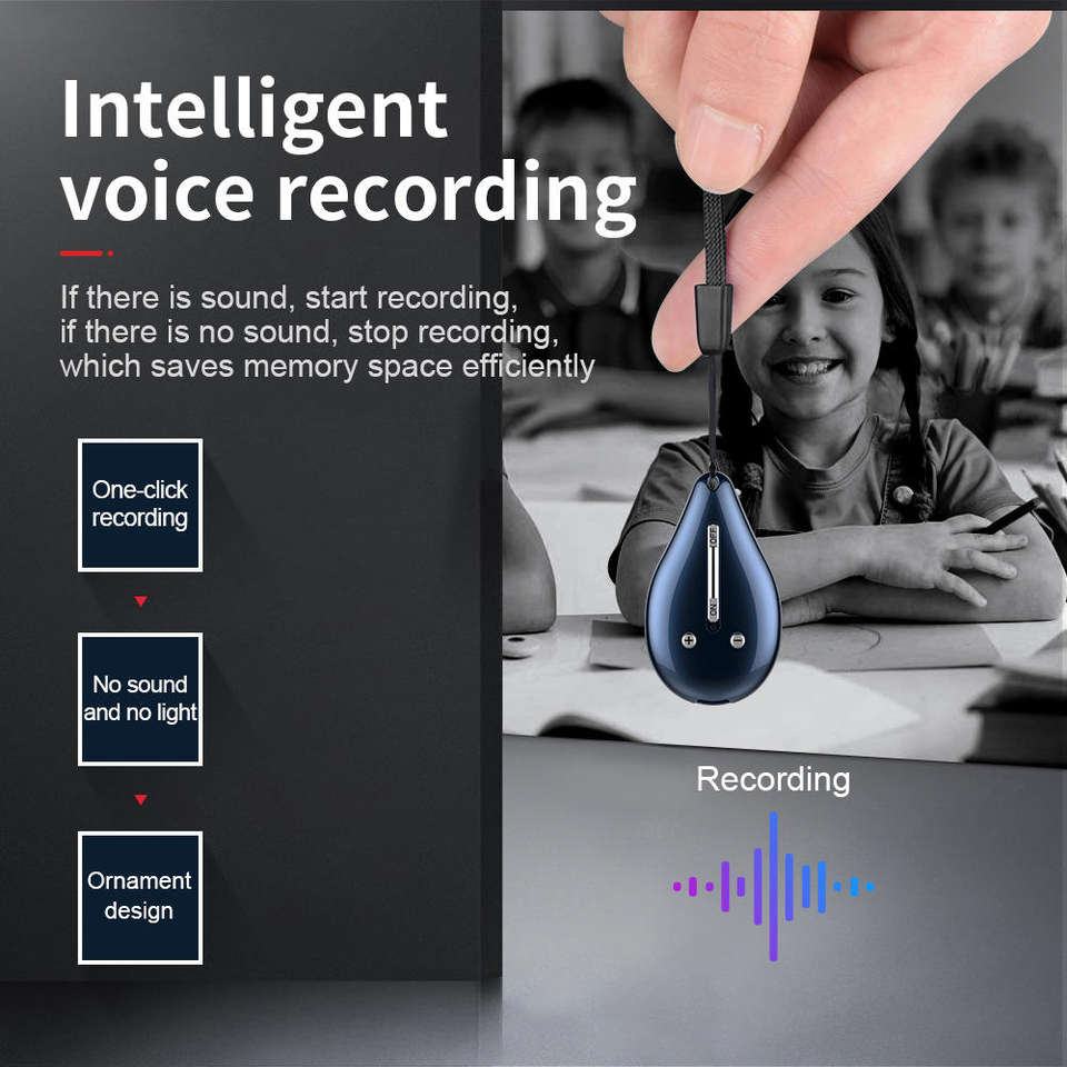 Grabadora de Voz Mini con Forma de Gota de Agua, Personalizable de Fábrica, Recargable por USB, Dispositivo de Grabación Activado por Voz para Reuniones, Clases y Ambientes Silenciosos