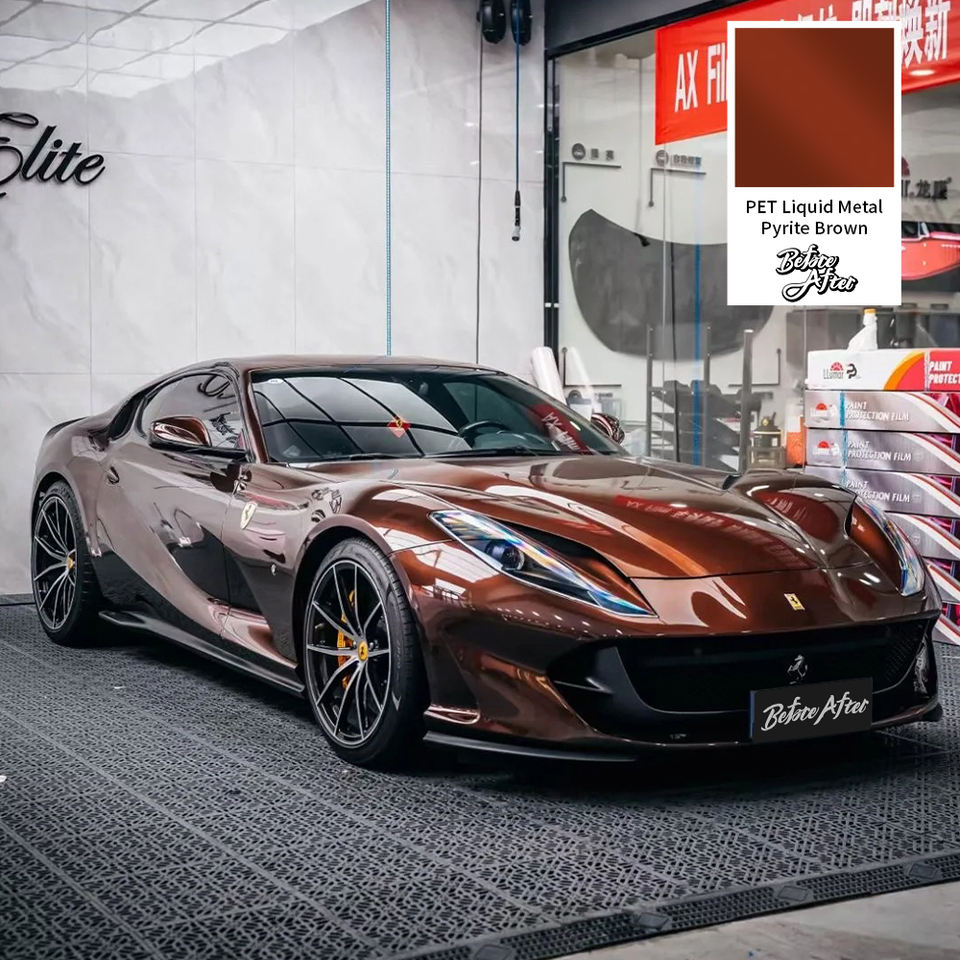 Personalización de fábrica 59ft PET Liner Gloss Liquid Metallic Tan Body Paint Car wraps