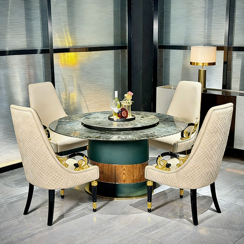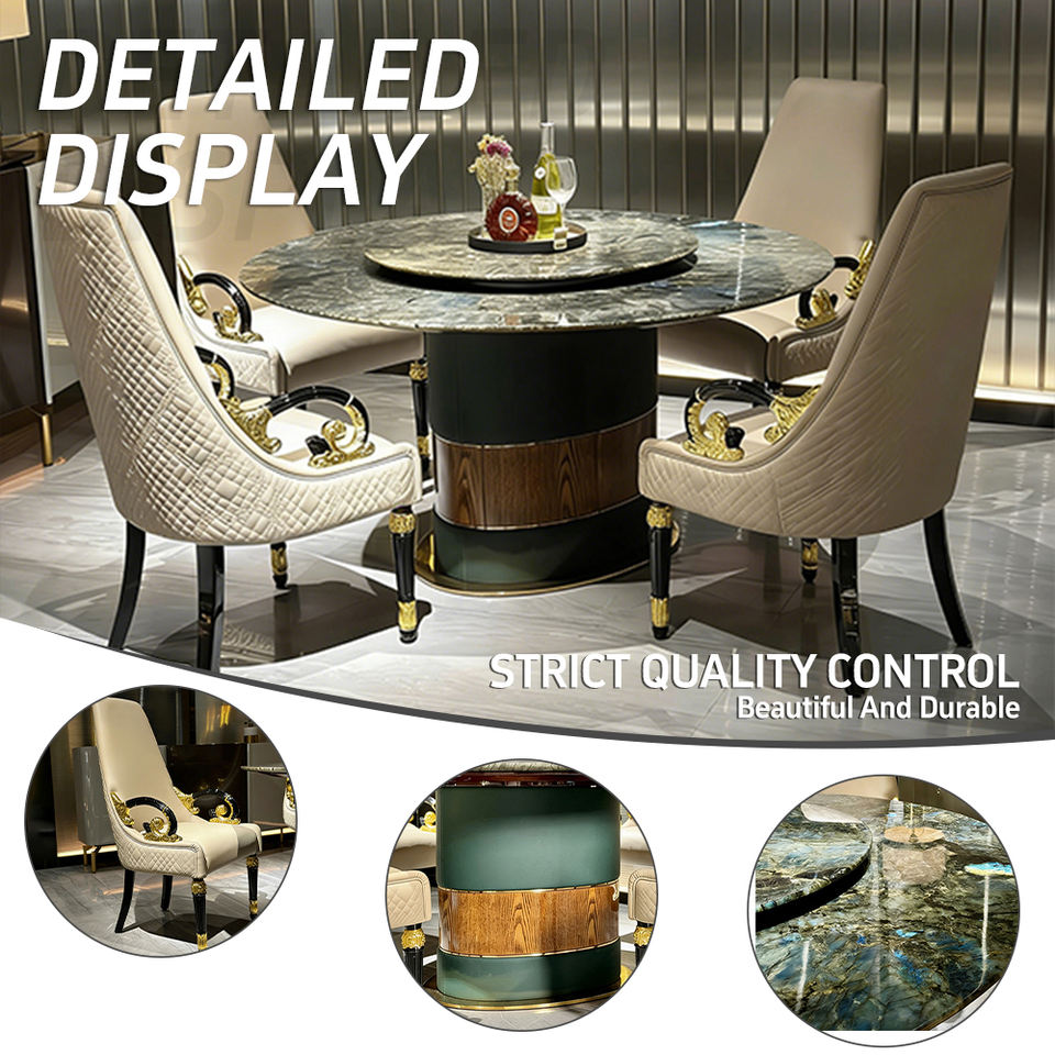 Juego de Comedor de Lujo Personalizado de Fábrica, Mesa de Comedor Redonda Giratoria con Tapa de Mármol Moderna para Villas