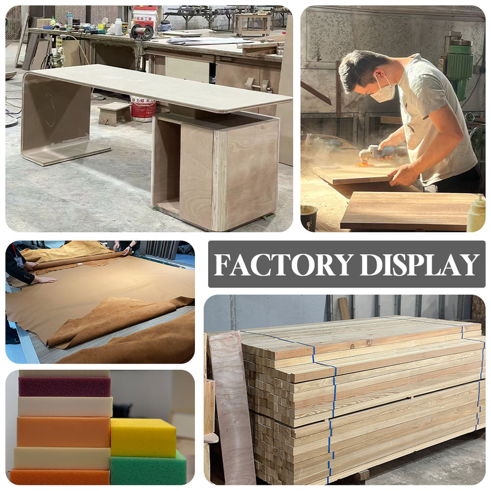 Material principal:Madera maciza + chapa de madera + mármol + metal + cuero