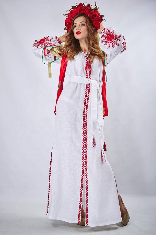 Personalización de fábrica, vestido bordado de Color rojo ucraniano blanco, vestido largo tradicional gitano