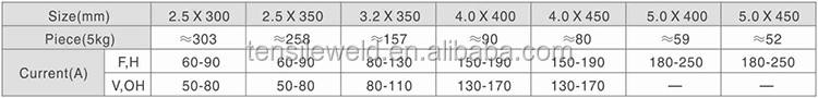 Característica:Arco estable, poca salpicadura, fácil eliminación de escoria y capacidad de reencendido.