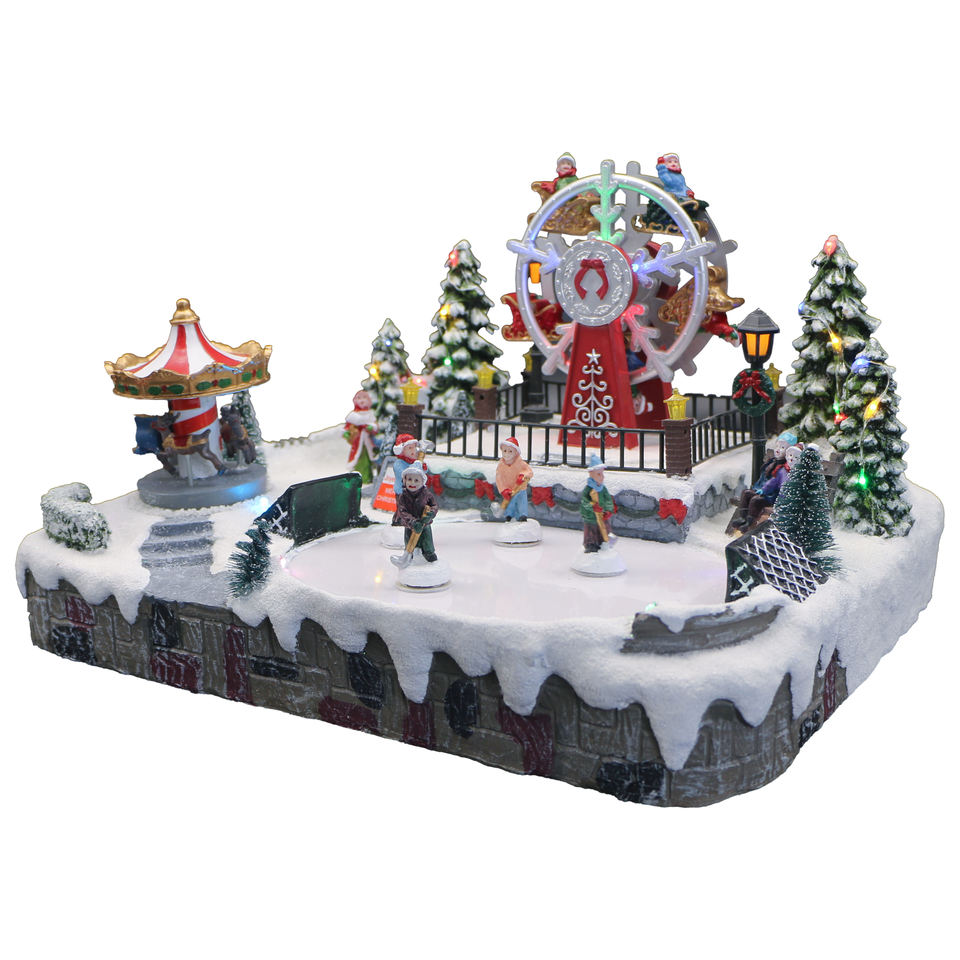 Shape:led Resin Xmas Village skaters,carousel and ferris wheels music