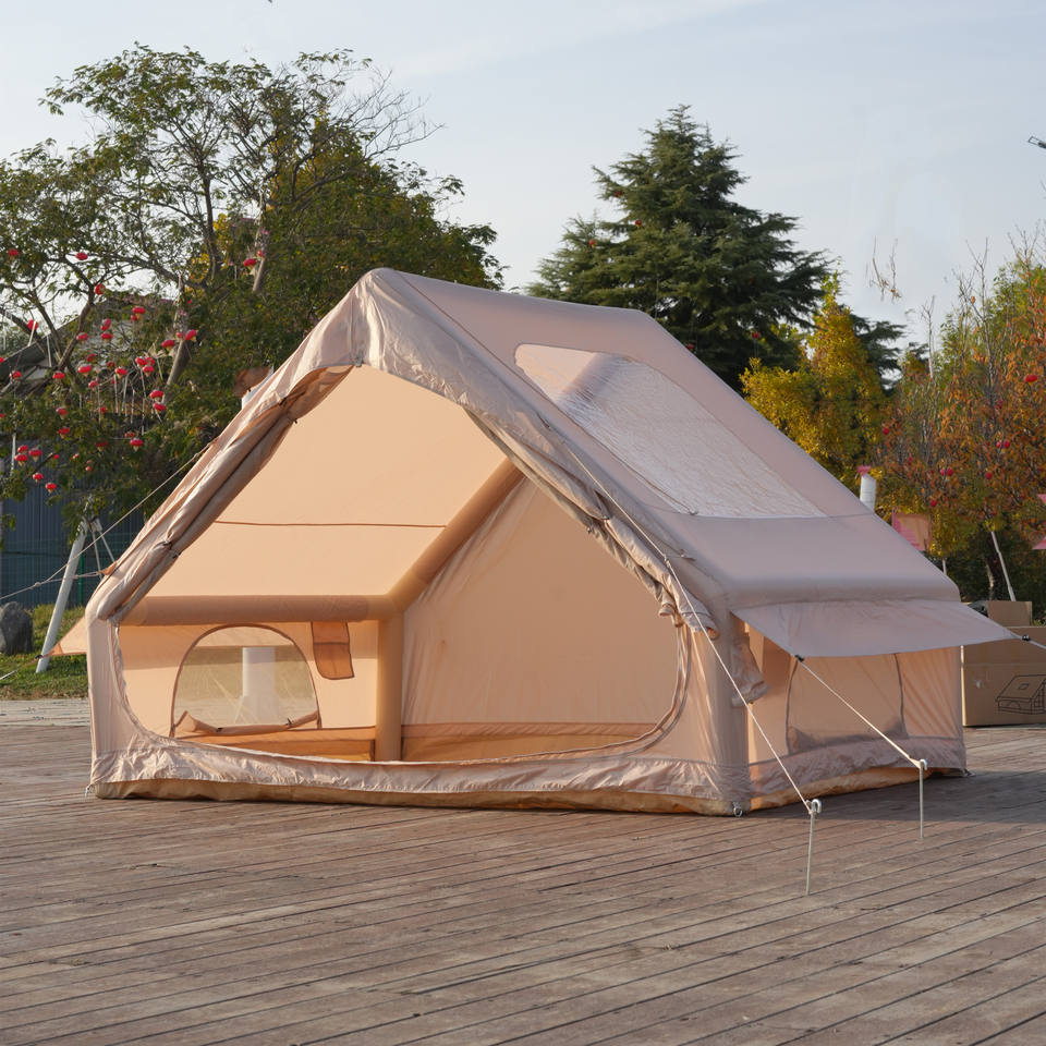 Tienda de aire de tela Oxford impermeable 600D personalizada de fábrica para acampar al aire libre 1-4 personas tienda inflable estructura de un dormitorio