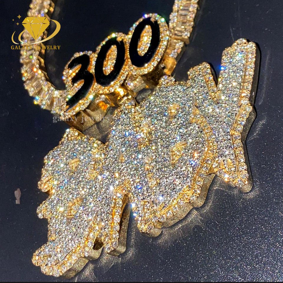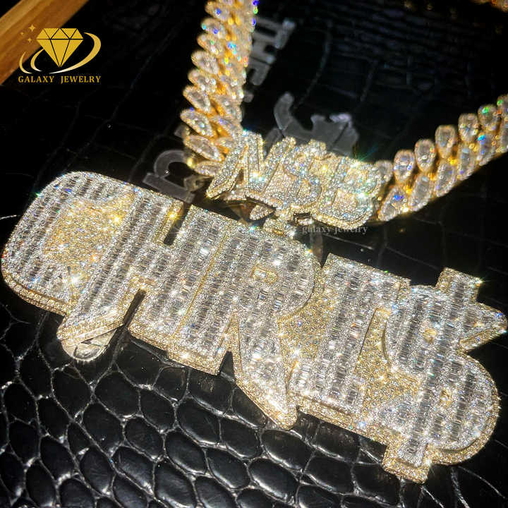 Colgante de letra de moissanita personalizado de fábrica Iced Out Baguette Vvs Diamond Bust Down Moissanite nombre colgante hombres collar inicial