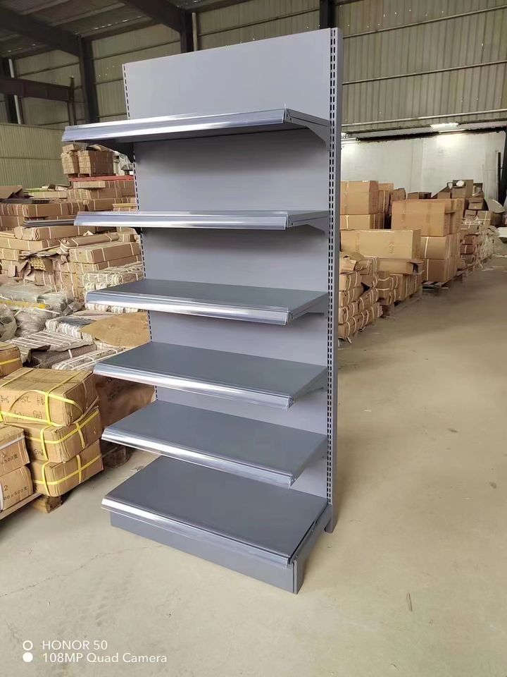 Estantes minimarket resistentes de metal de tamaño de color personalizado de fábrica estantes de pared para exhibición de cosméticos góndola