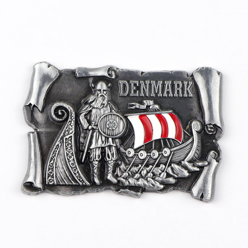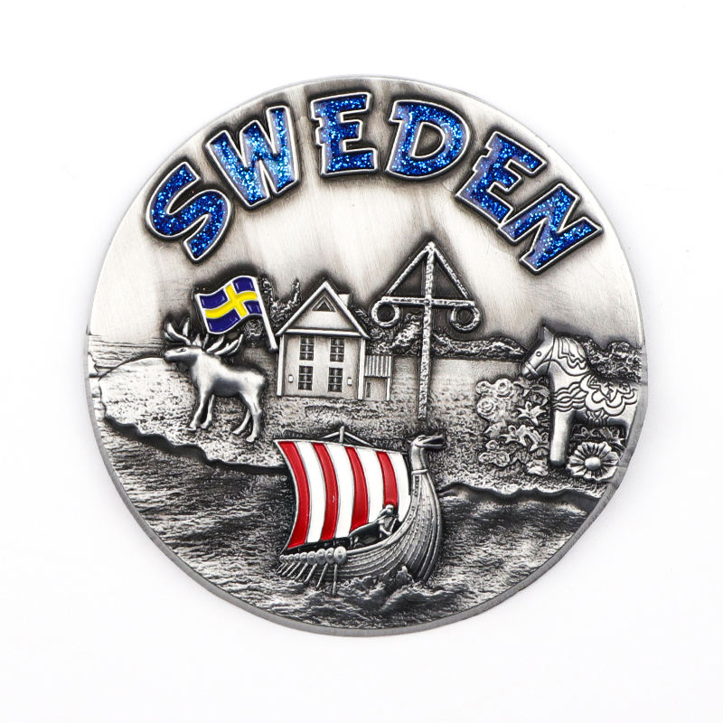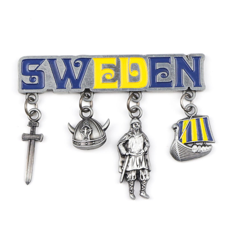 Diseño personalizado de fábrica Suecia Dinamarca Recuerdo turístico Imán de nevera de metal 3D para refrigerador