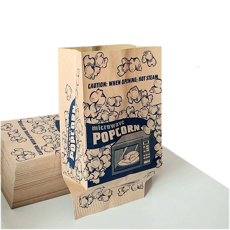 Bolsas de Papel Impresas Desechables Personalizadas de Fábrica, Bolsas para Palomitas de Maíz para Microondas, Bolsas de Embalaje para Palomitas de Maíz