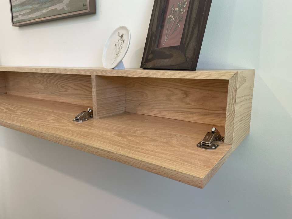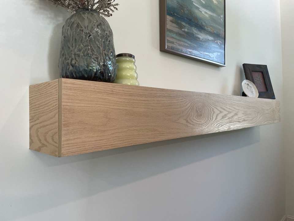 Estante oculto flotante personalizado de fábrica, chimenea de almacenamiento oculto, viga de caja de madera dura de roble moderna lisa