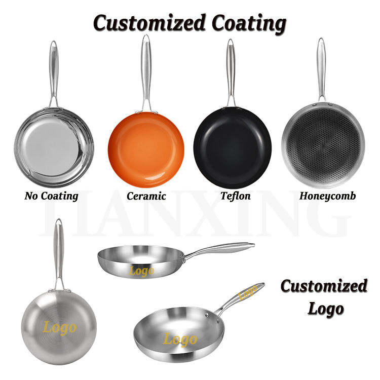Juego de Sartenes Antiadherentes de Acero Inoxidable de Grado Alimenticio Personalizados de Fábrica para Cocina Casera y Restaurante, Sartén para Omelet