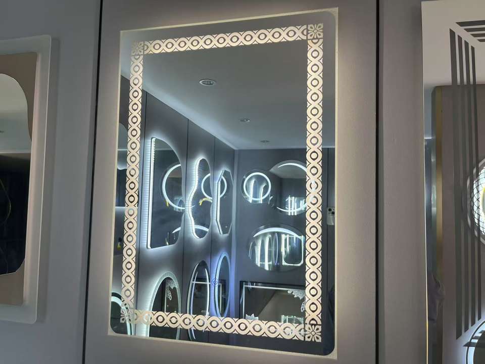 Espejo de baño LED inteligente antiniebla de alta definición sin marco personalizado de fábrica con diodo luminoso para apartamento de Hotel en casa