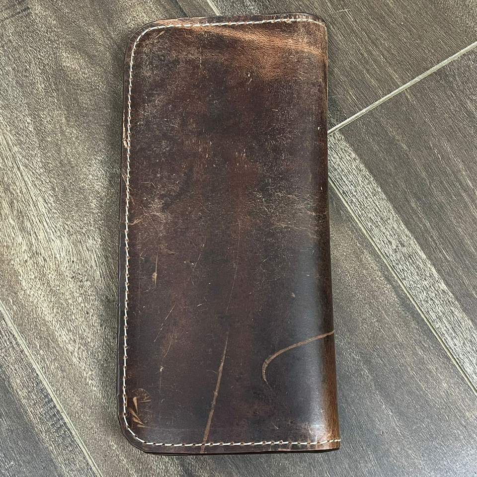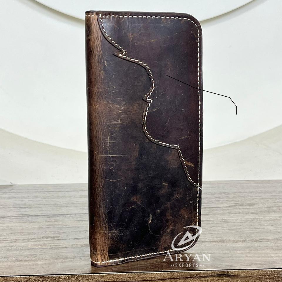 Cartera Bifold Larga de Cuero Genuino de Grano Completo