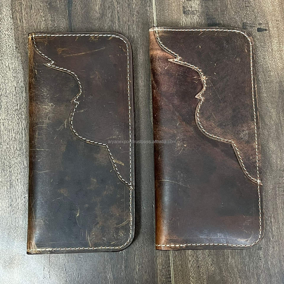 Tarjetero de cuero de grano completo personalizado de fábrica, billetera plegable, billetera larga de cuero real al por mayor, billetera de cuero genuino para hombres