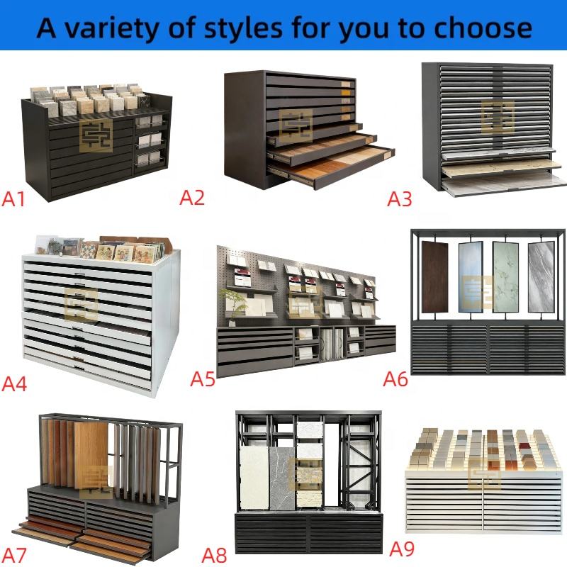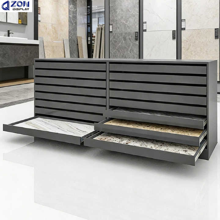Vitrina Metálica Deslizable de Alta Gama Personalizada de Fábrica para Exhibición de Granito, Cerámica, Madera, Losetas y Losas de Piedra en Salas de Exhibición