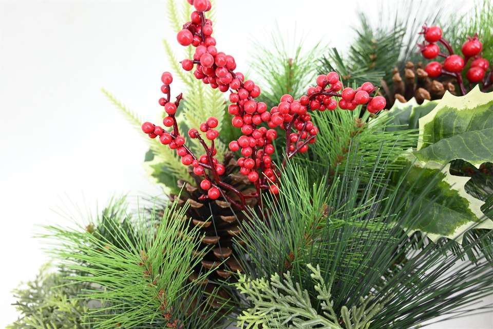 Corona Navideña Artificial de Frutos Rojos de Pino, Ecológica, Personalizada de Fábrica para Interiores