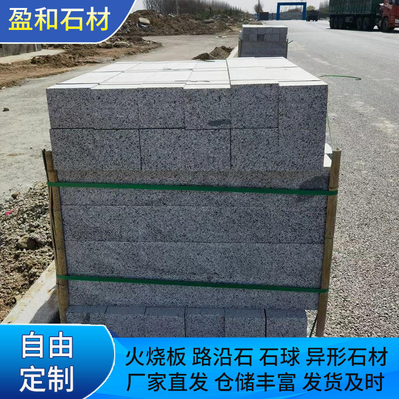 Borde de acera personalizado de fábrica, color gris loto, superficie quemada, piedra de tráfico de forma especial para carreteras
