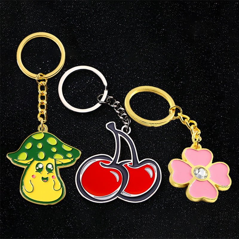 Llavero personalizado de fábrica, llavero bonito de dibujos animados, llavero 2d 3D dorado, plateado, flor, seta, cereza, llaveros con logotipo