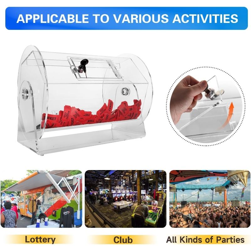 Boleto de rifa de gran tamaño personalizado de fábrica, tambor giratorio, rueda acrílica, jaula de lotería giratoria, caja de rifa acrílica