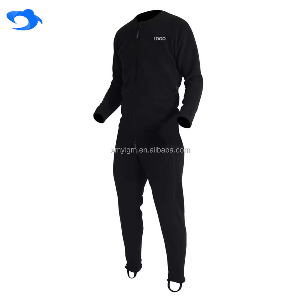 Mono polar de capa media aislante negro personalizado de fábrica para hombre, ropa interior térmica debajo del traje seco para kayak