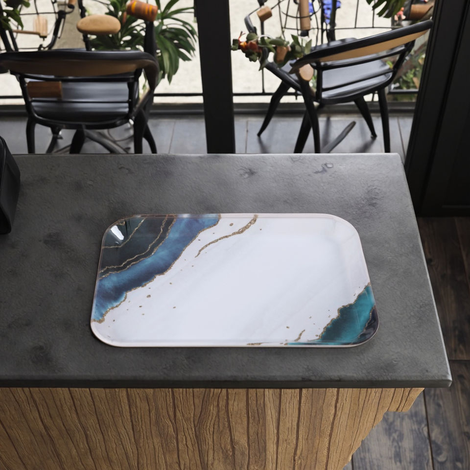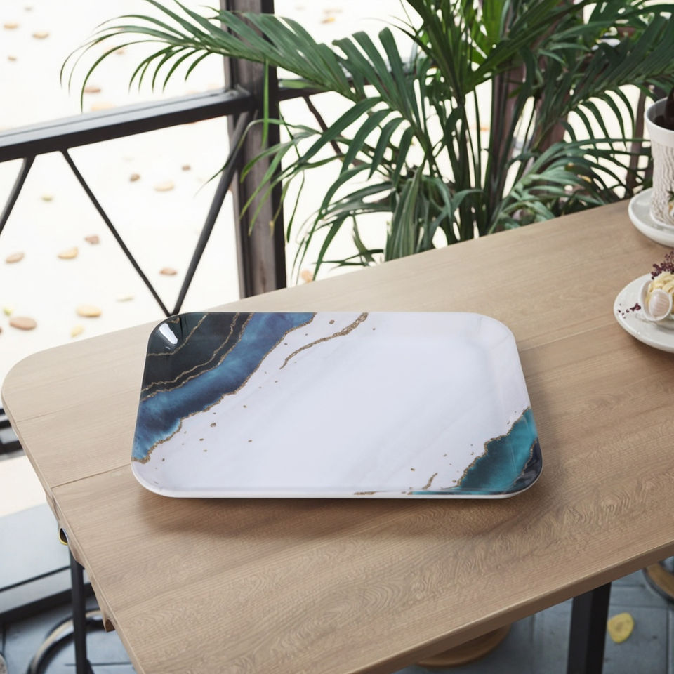 Fábrica personalizada nórdica mármol pintura estilo Rectangular galleta taza fruta bandeja plana 3 Set 12 13,5 15 pulgadas