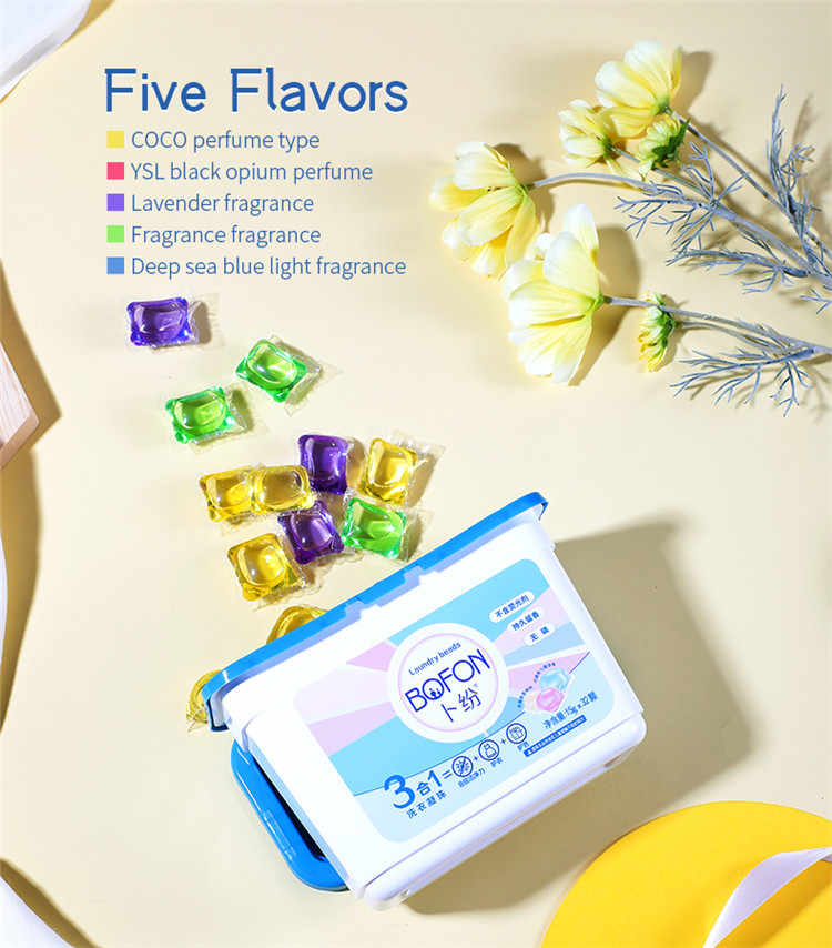 Cuentas de perfume personalizadas de fábrica para cápsulas de lavandería, cápsulas de lavado con paquete de caja