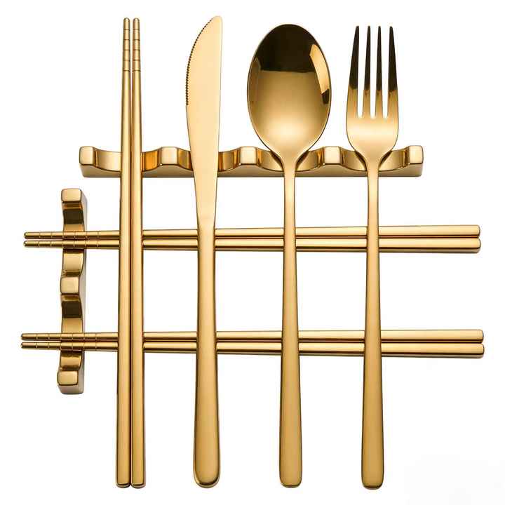 Servicios de Producción Personalizados de Fábrica, Juego de Cubiertos de Acero Inoxidable Dorado, Juego de Cubiertos Portátiles Reutilizables con Palillos y Cuchara