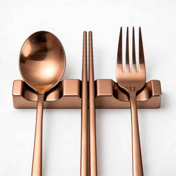 Servicios de Producción Personalizados de Fábrica: Palillos, Cucharas y Tenedores de Acero Inoxidable con Acabado PVD en Oro y Bronce, Porta Palillos y Cubiertos